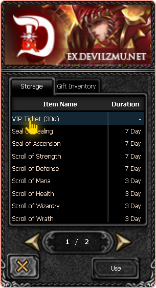 If you choose to choose to use the benefits of the VIP ticket, right-click on it in the inventory. A confirmation box will appear, by confirming by clicking OK you will receive all VIP benefits. See the example below indicating where you should click: