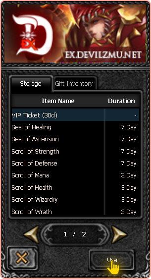 After selecting the same VIP ticket in the previous image, you must click the USE button. See the example below indicating where you should click:
