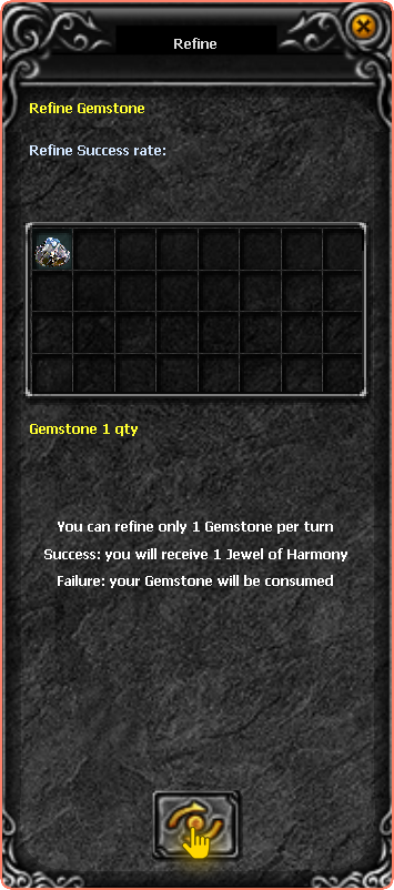 NPC Elpis is the head of the refinery, and also responsible for offering Gemstone refinement for Jewel of Harmony at a small Zen cost.