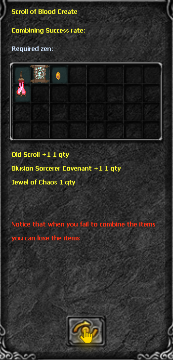 Cuốn sổ Máu là lời mời dùng để vào Illusion Temple, cấp độ tham gia sẽ được xác định bằng cấp độ của cuốn sổ mời.