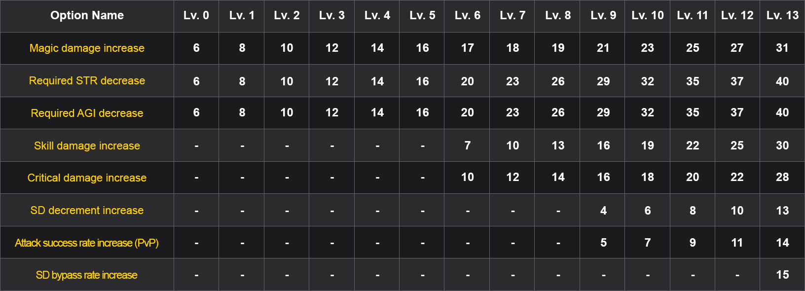 Các tùy chọn Harmony có sẵn cho Vũ khí (Ngoại trừ Gậy phép):